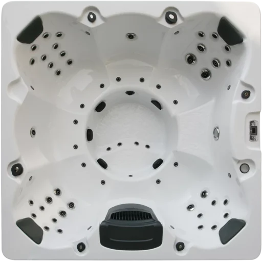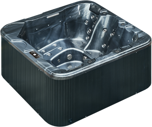 Es ist ein Jacuzzi, dessen Design zu langen, vertraulichen Gesprächen einlädt. Die vier bequemen, tief sitzenden Sitze erinnern an VIP-Sessel - nur dass sie in eine warme, sprudelnde Quelle getaucht sind. -