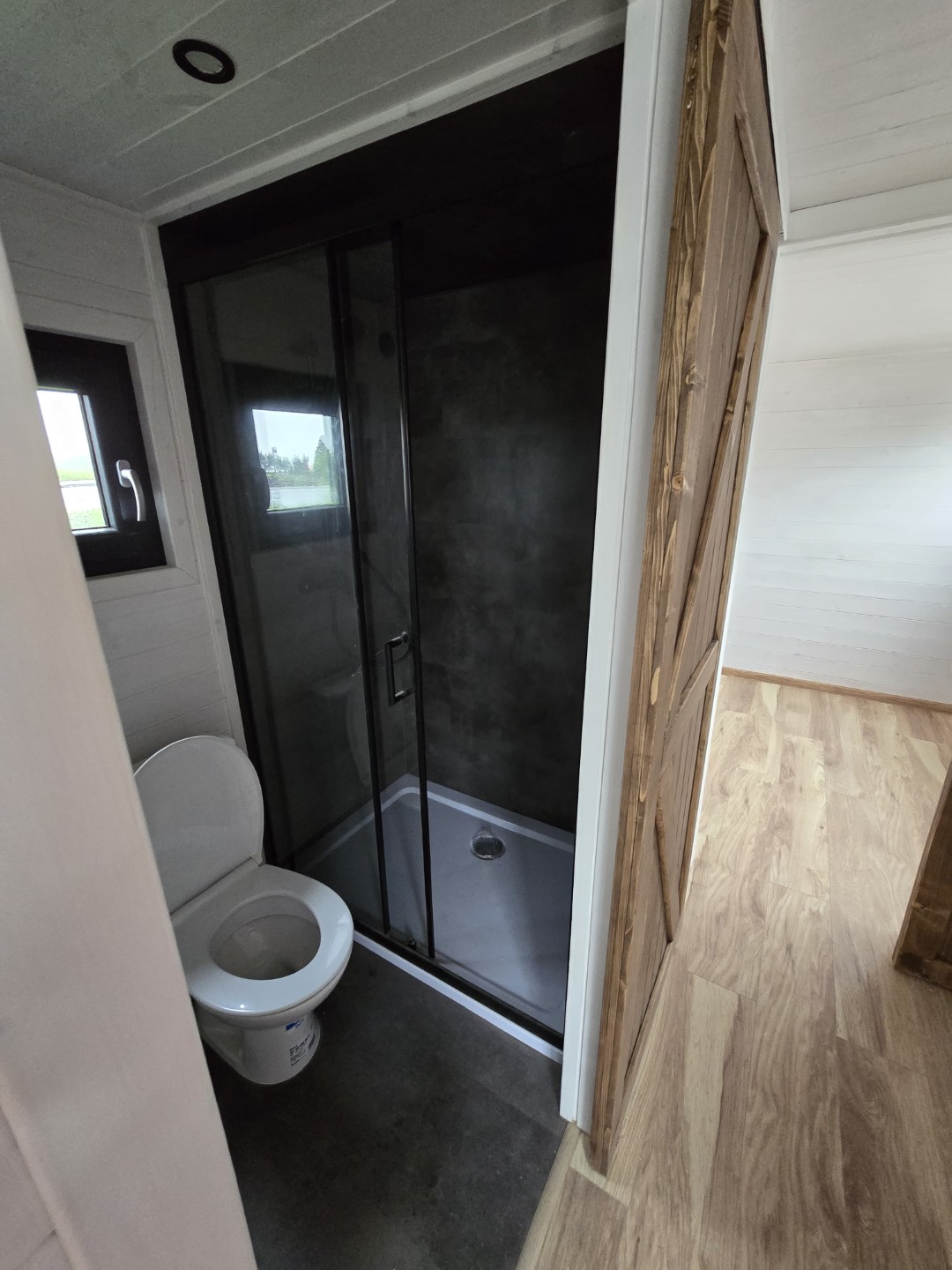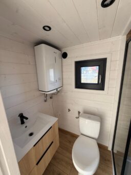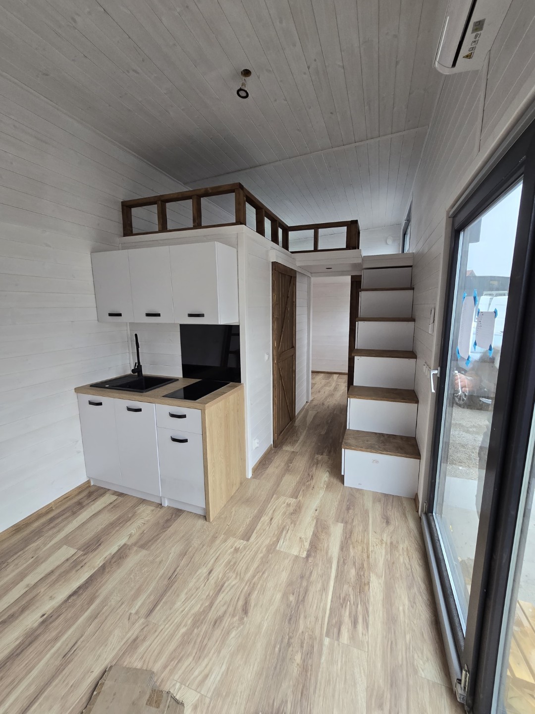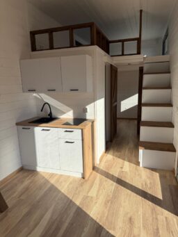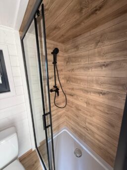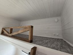Unser Benjamin-Mobilheim verfügt über zusätzlichen Platz in Form eines separaten Zimmers. Das Zimmer ist recht groß (für ein Wohnmobil), bietet Platz für ein 2-Personen-Bett und kann als Schlafzimmer genutzt werden. Es bietet mehr Privatsphäre und Ruhe. Außerdem verfügt Benjamin, wie unsere anderen Chalets, über zwei Zwischengeschosse, die ebenfalls als Schlafzimmer fungieren. Sie erhalten also bis zu 3 Plätze zum Entspannen.