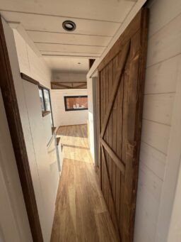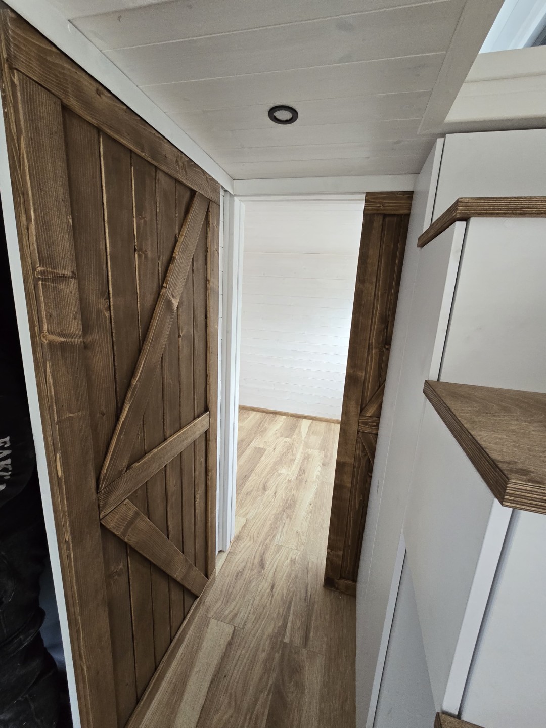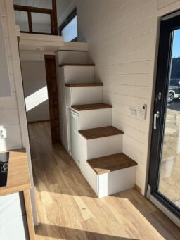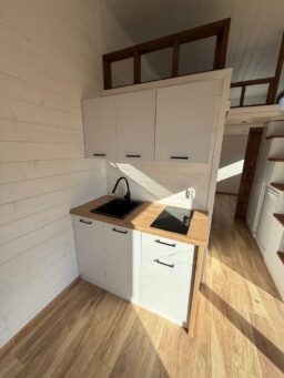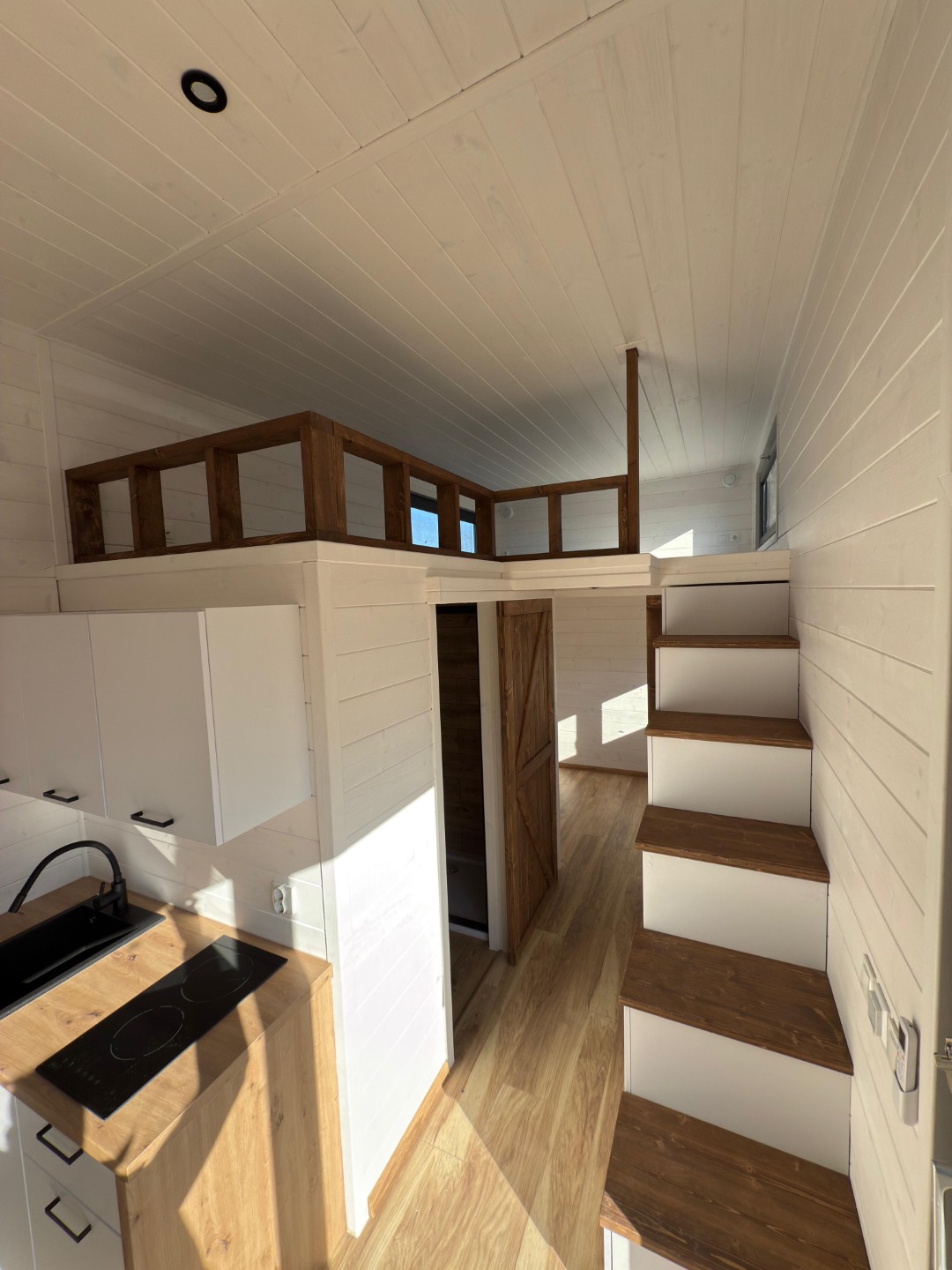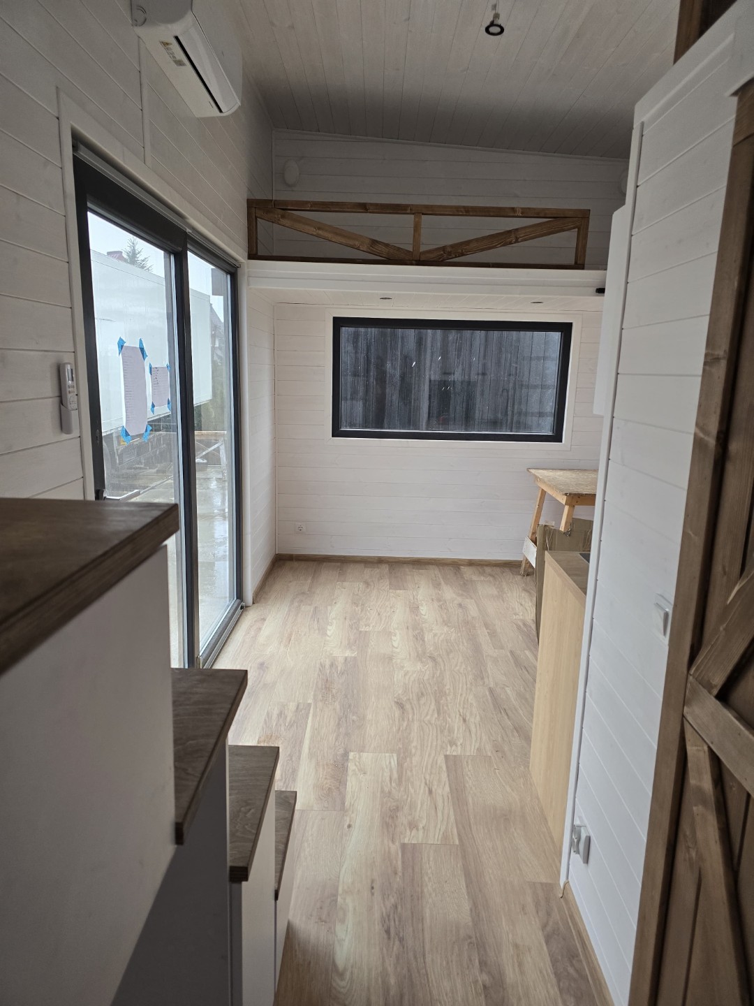 Unser Benjamin-Mobilheim verfügt über zusätzlichen Platz in Form eines separaten Zimmers. Das Zimmer ist recht groß (für ein Wohnmobil), bietet Platz für ein 2-Personen-Bett und kann als Schlafzimmer genutzt werden. Es bietet mehr Privatsphäre und Ruhe. Außerdem verfügt Benjamin, wie unsere anderen Chalets, über zwei Zwischengeschosse, die ebenfalls als Schlafzimmer fungieren. Sie erhalten also bis zu 3 Plätze zum Entspannen.