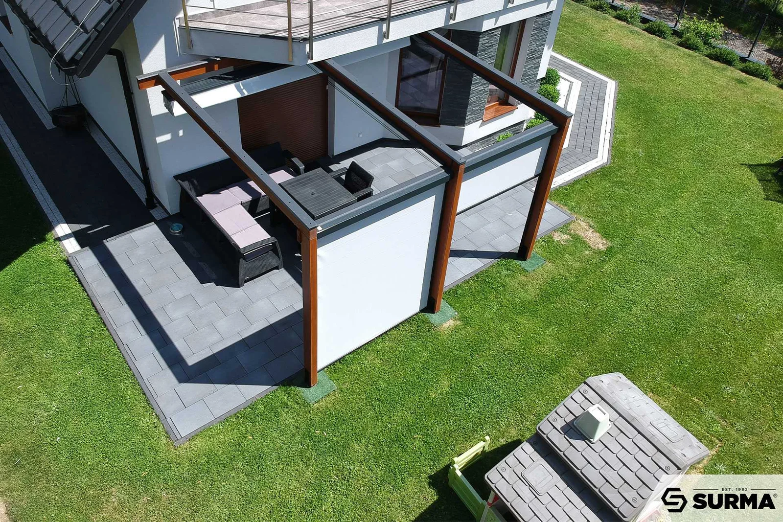 Unabhängige Montage, wodurch die Pergola überall frei aufgestellt werden kann – sogar auf der Dachterrasse eines Gebäudes oder auf einem Grundstück mitten im Wald.