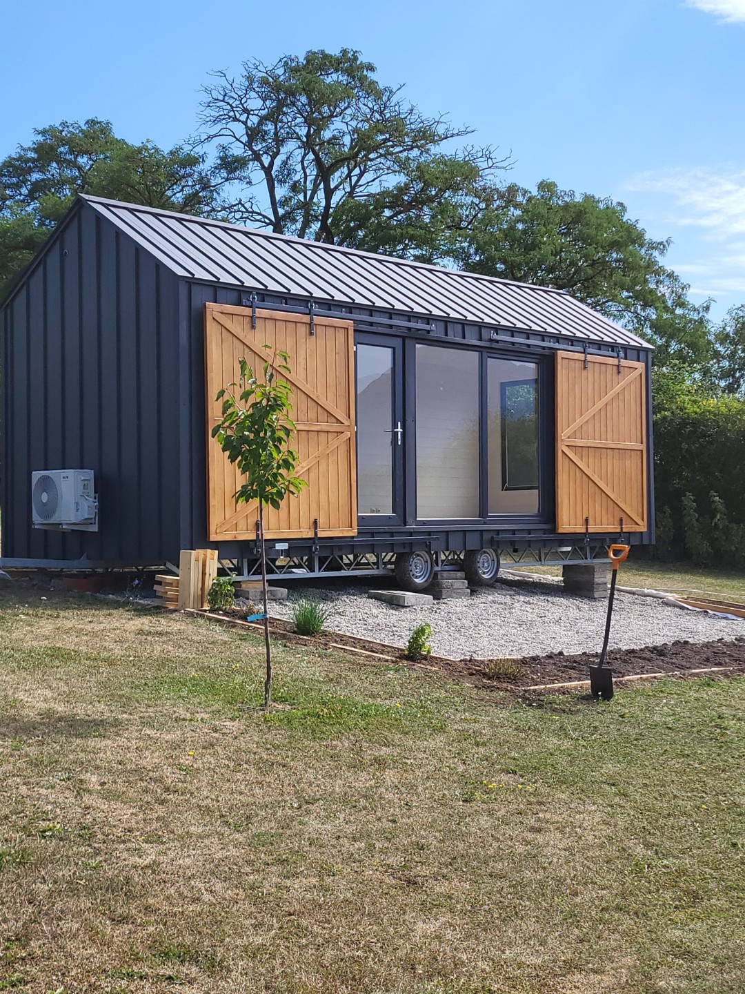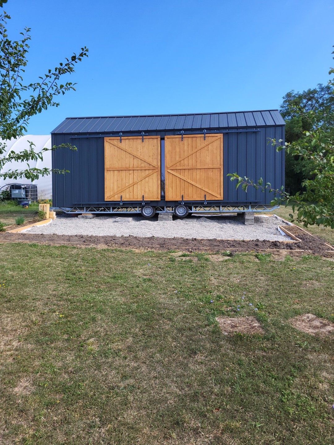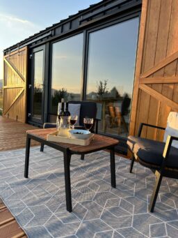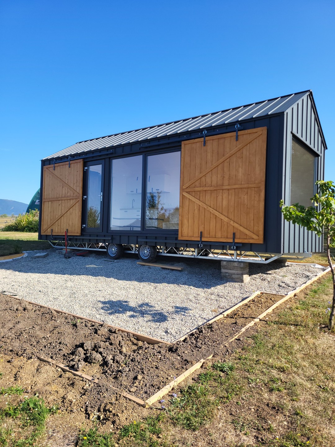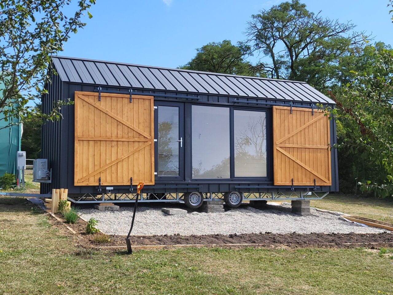Dieses Sommerdesign passt perfekt zum Konzept des Tiny House: Minimalismus und Kontakt mit der Umwelt. Als trendbewusster Hersteller von Mobilheimen haben wir uns für Schlichtheit entschieden. Es mag den Anschein haben, dass sich der Name nur auf das Äußere bezieht. Nichts könnte weiter von der Wahrheit entfernt sein! Das Innere ist wie eine Scheune im Landhausstil gestaltet. Sie werden Holzelemente wie K-förmige Türen und natürliche Dielen an den Wänden finden. Diese tragen zu der Gemütlichkeit bei, die bei ganzjährigen Bauten sehr wichtig ist.