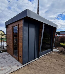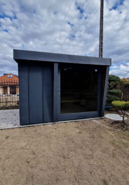 Moderne Gartensauna, entworfen mit Blick auf Komfort, Funktionalität und elegantes Design. Die Konstruktion mit den Maßen 3 × 2,20 m eignet sich ideal sowohl für den heimischen Garten als auch für Freizeitbereiche. Die minimalistische Form, die Kombination aus natürlichem Fichtenholz und Blech sowie große Glasflächen verleihen ihr einen außergewöhnlichen, designorientierten Charakter.Moderne Gartensauna, entworfen mit Blick auf Komfort, Funktionalität und elegantes Design. Die Konstruktion mit den Maßen 3 × 2,20 m eignet sich ideal sowohl für den heimischen Garten als auch für Freizeitbereiche. Die minimalistische Form, die Kombination aus natürlichem Fichtenholz und Blech sowie große Glasflächen verleihen ihr einen außergewöhnlichen, designorientierten Charakter.