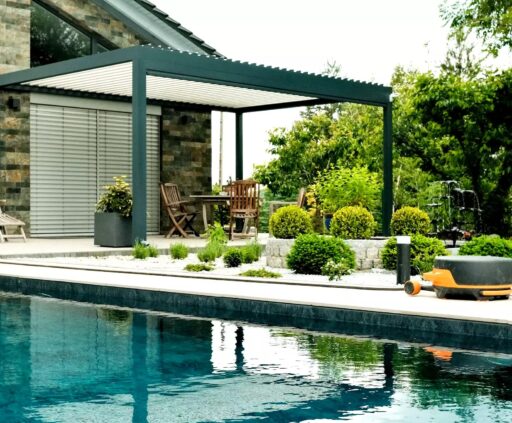 Das elegante und moderne Design der TOSCANA Pergola fügt sich perfekt in eine Vielzahl von architektonischen Stilen ein, während die robuste Aluminiumkonstruktion Langlebigkeit und Korrosionsbeständigkeit gewährleistet.